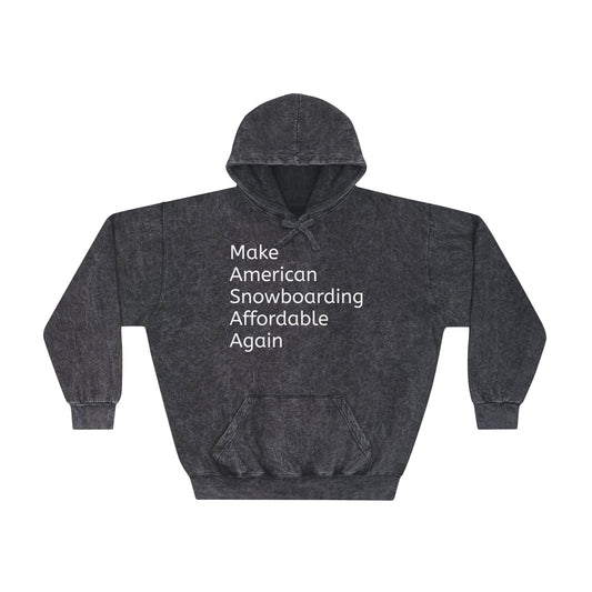 Unisex Mineral Wash Hoodie - Make American Snowboarding Affordable Again | Sleep Coffee Snowboard Apres Repeat